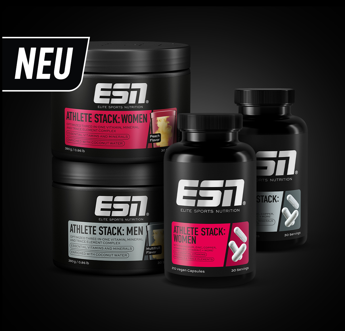 Als Pulver oder Kapseln enthält es alle essentiellen Vitamine und ausgewählte Mineralstoffe für Athleten. Auch für Frauen erhältlich!
