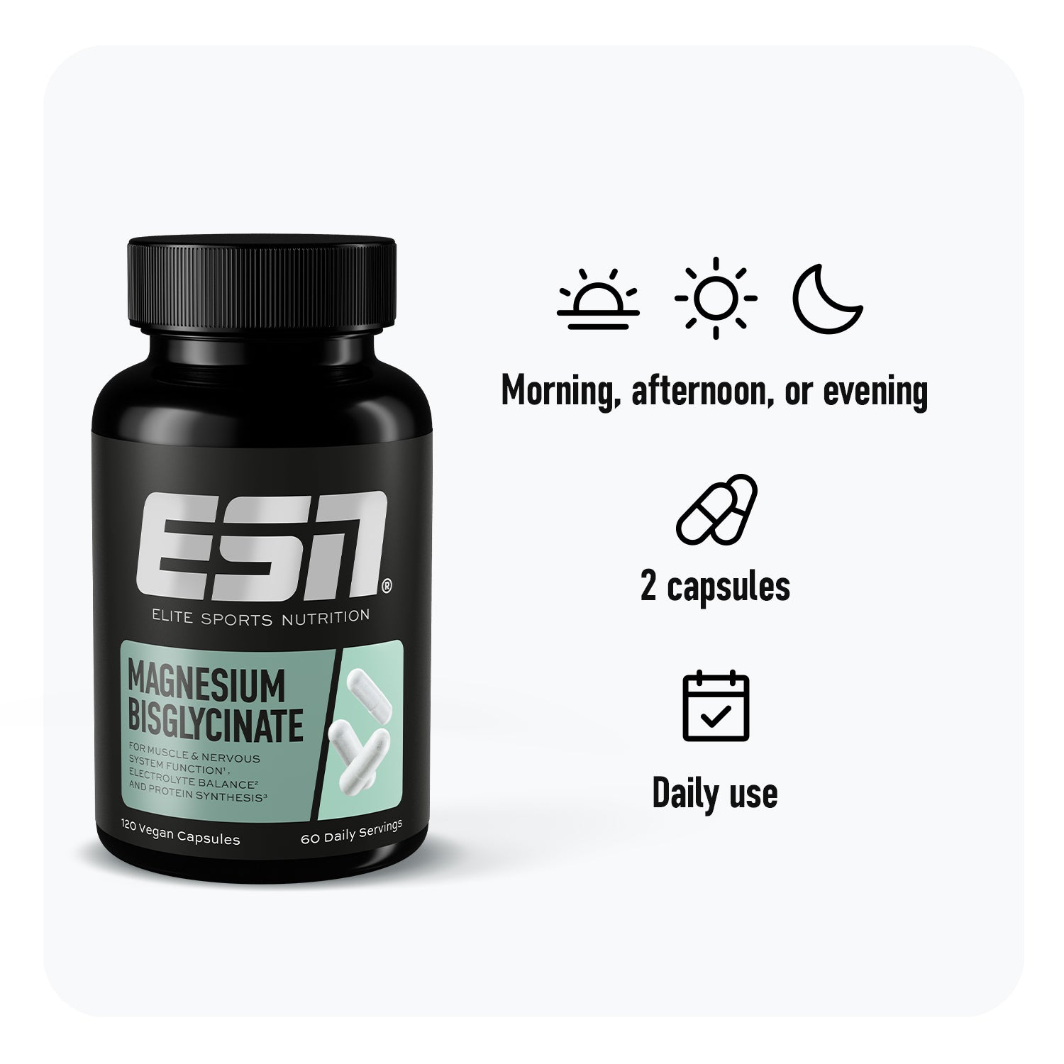 Magnesium bisglycinate capsules with high bioavailability to support your energy balance.