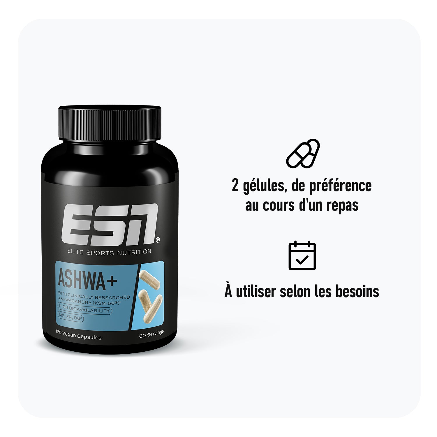 Contrôle du stress antioxydant - avec notre Ashwa+. Nous avons combiné l'ashwagandha breveté (KSM-66®) avec des nutriments anti-stress pour un équilibre mental et une protection cellulaire.1,2,3 Le soutien idéal dont tu as besoin lors d'entraînements difficiles ou d'une vie quotidienne stressante.