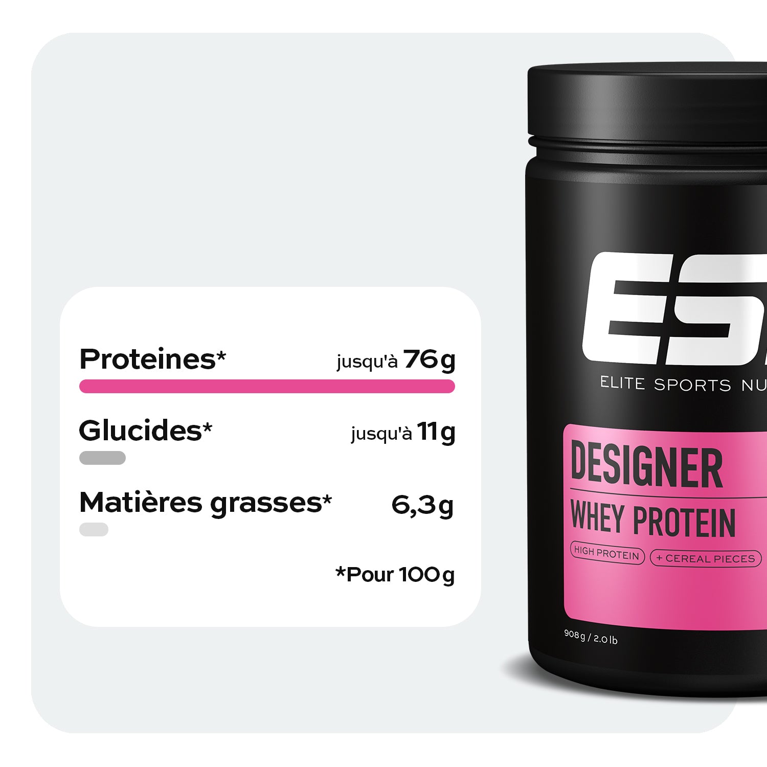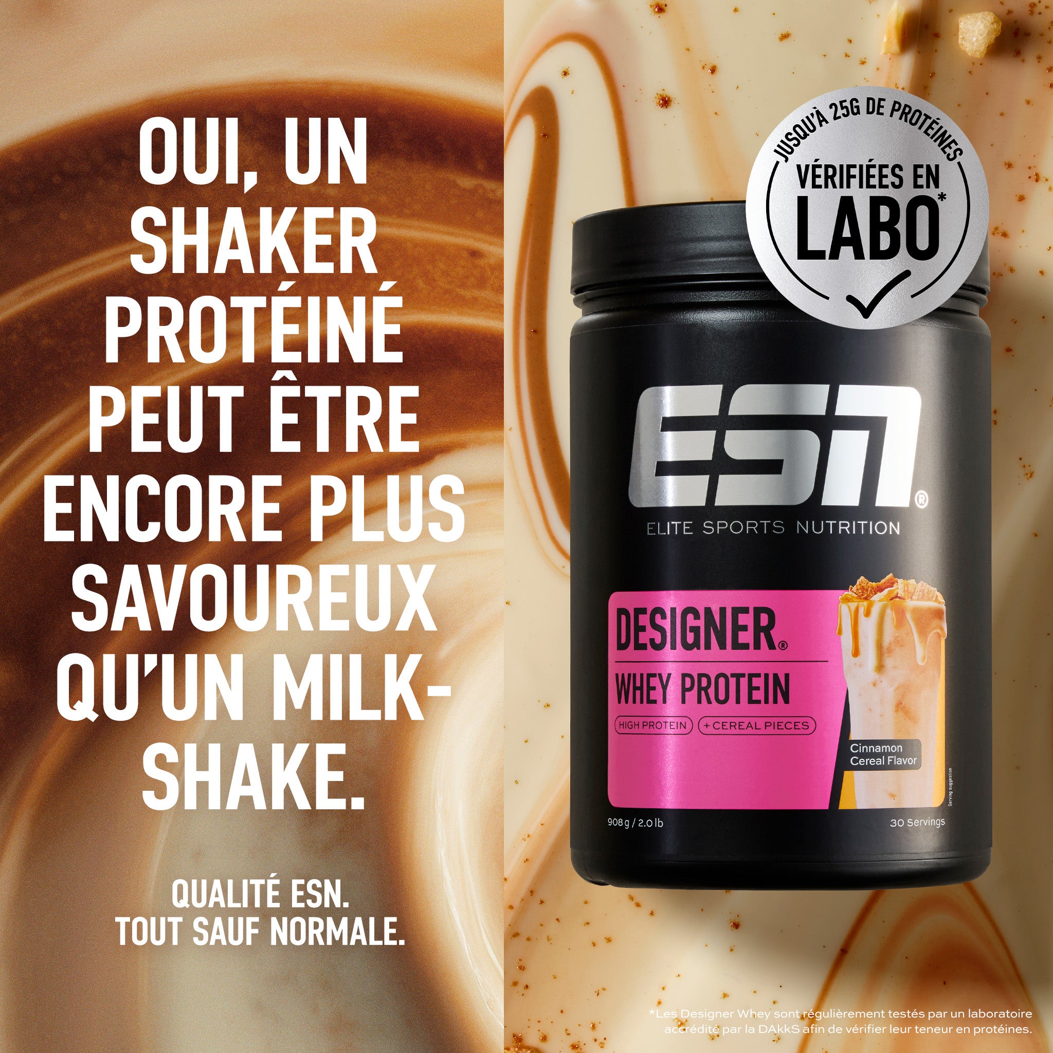 Germany's No. 1 Whey1 : notre Designer Whey a été élue protéine de lactosérum la plus populaire d'Allemagne.1 A juste titre, car elle associe un goût généreux à une consistance crémeuse et un complexe de protéines de lactosérum de haute qualité - le soutien idéal pour tes muscles.4 Prépare-toi et découvre la (r)évolution des goûts dans des variétés irrésistibles - sans sucre ajouté.3 Les protéines de lactosérum de la gamme Designer sont disponibles en plusieurs variétés.