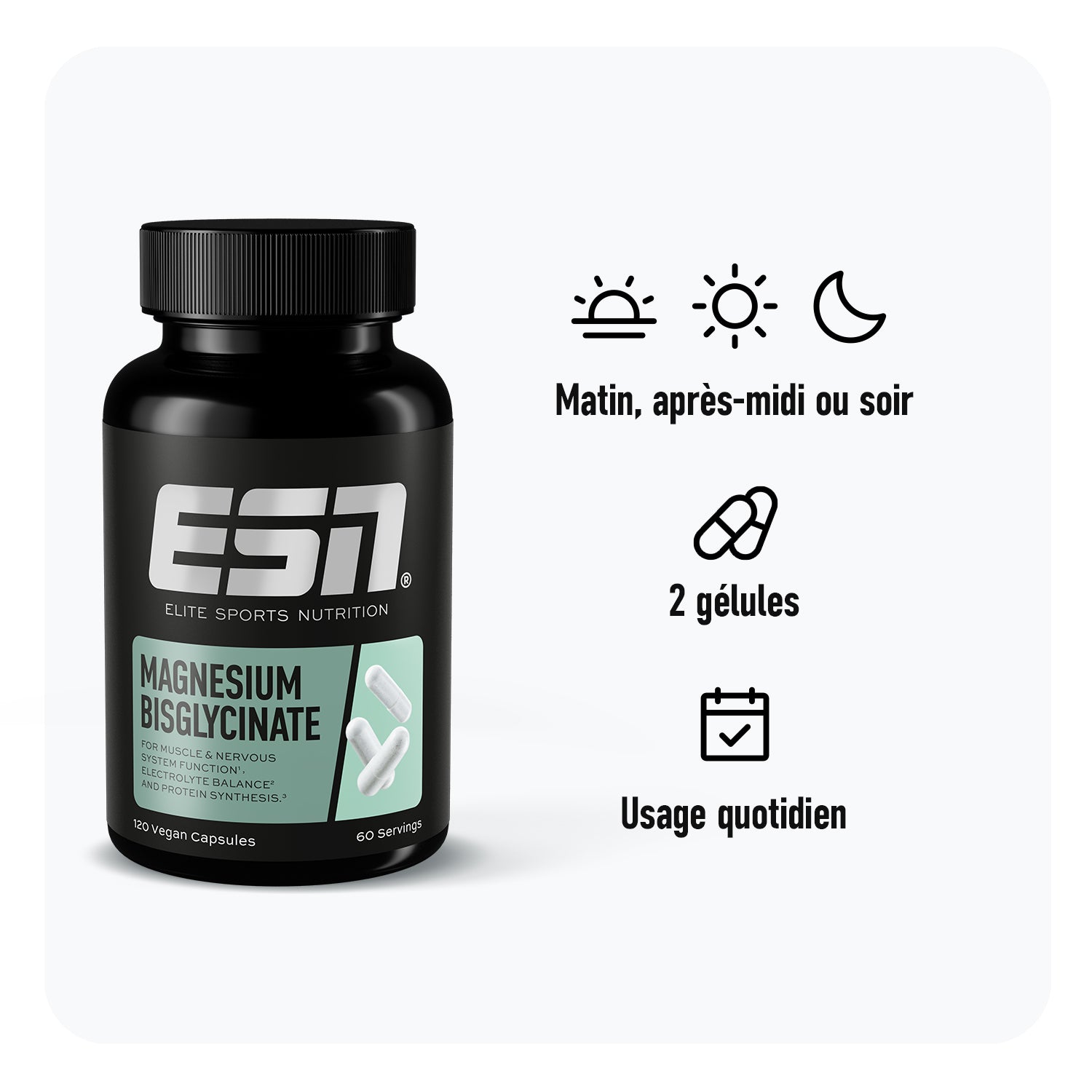 Capsules de bisglycinate de magnésium à haute biodisponibilité pour soutenir ton niveau d'énergie