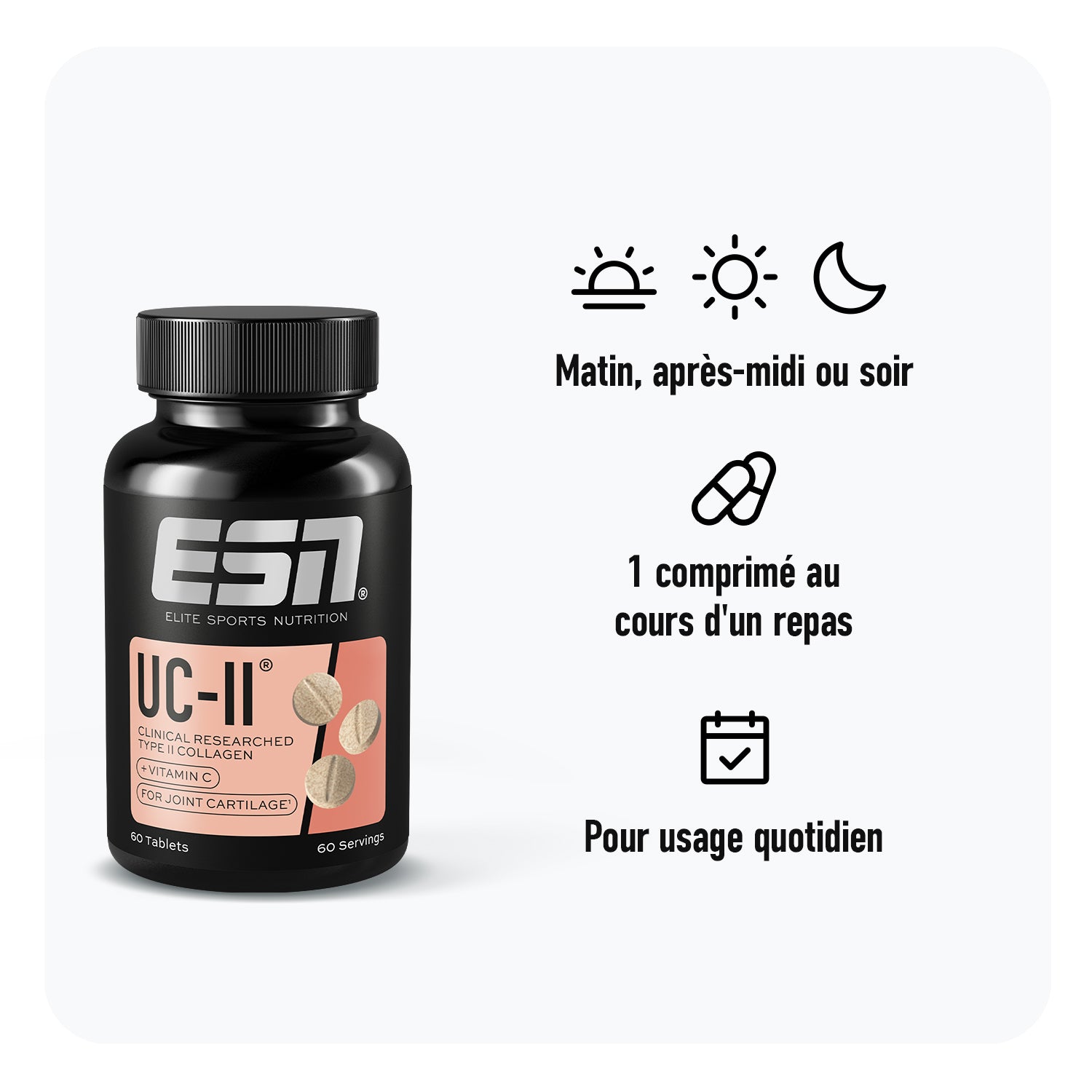 La consommation journalière indiquée ne doit pas être dépassée. Les compléments alimentaires ne peuvent pas se substituer à une alimentation équilibrée et variée ni à un mode de vie sain. Conserver hors de portée des jeunes enfants. UC-II® est une marque de Lonza.