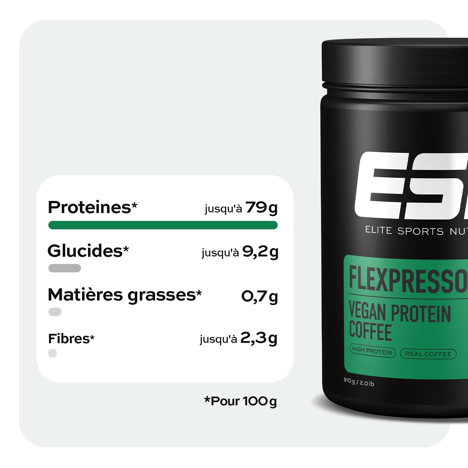 Commencez votre journée à la manière vegan – avec Flexpresso Vegan. Dans notre café protéiné, nous combinons la puissance précieuse des protéines végétales avec du véritable café. Pleine onctuosité, plein de goût et un soutien total pour vos muscles.1