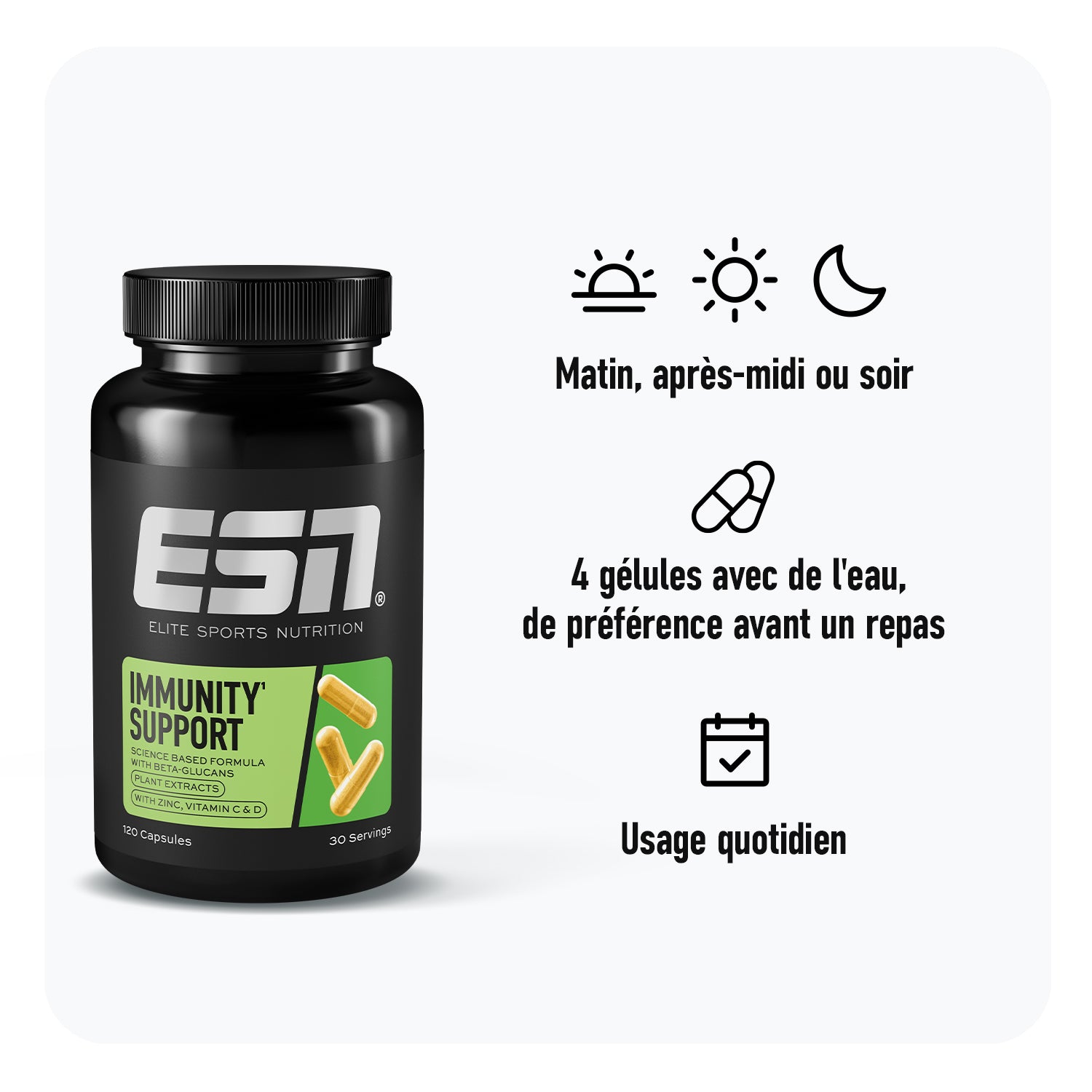 Maximise ton immunité1, minimise tes pauses - avec notre support Immunity1. La nouvelle formule de nos gélules immunitaires avec des bêta-glucanes, des extraits de plantes et des micronutriments t'offre un soutien optimal pour ton système immunitaire - temporairement à titre préventif et de manière aiguë.1 Idéal pour réduire les interruptions d'entraînement et les pertes de progression.1