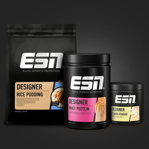 Breakfast for champions : notre petit déjeuner des vainqueurs. Tu t'entraînes comme un champion - et tu manges comme un champion. Pas encore ? Pas de problème, car notre bundle te fournit la combinaison parfaite de nutriments dont tu as besoin pour réaliser tes meilleures performances : avec le Rice Pudding, tu remplis tes réserves de glucides et tu crées la base d'une énergie maximale.¹ La Designer Whey fournit à tes muscles des protéines de haute qualité et avec la Designer Flavor Powder, tu donnes à ton petit-déjeuner crémeux un goût parfait.² Ready, set, eat.