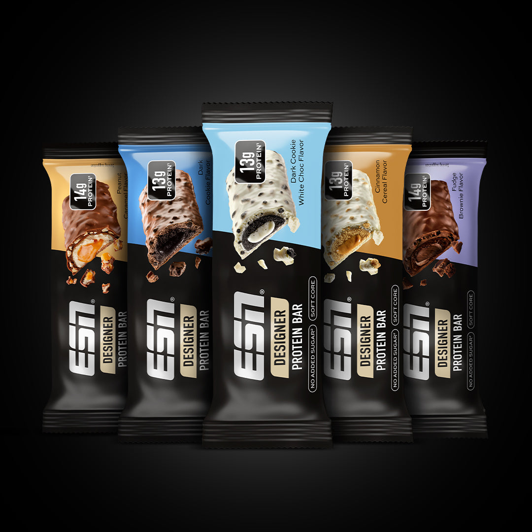 * Die ESN Designer Bars kommen ohne Zuckerzusatz aus. Sie enthalten nur den von Natur aus enthaltenen Zucker und setzen auf unbedenkliche Süßungsmitteln.
