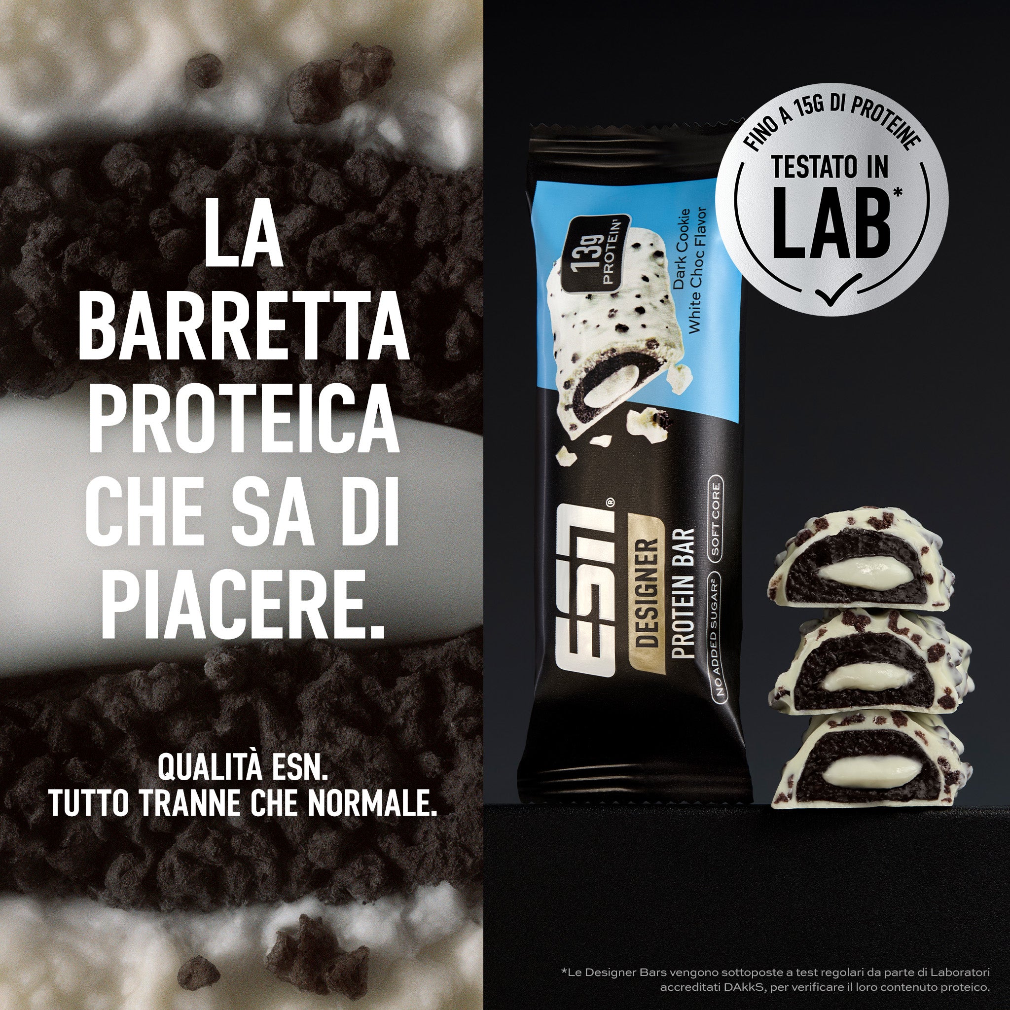 Potenza proteica in ogni boccone: Designer Protein Bar. Con questa barretta proteica abbiamo ridefinito il gioco delle barrette: Dal sapore irresistibile, ricca di proteine e senza zuccheri aggiunti, la nostra barretta proteica è lo snack proteico perfetto per gli atleti, i nutrizionisti e tutti coloro che amano le barrette di cioccolato.1