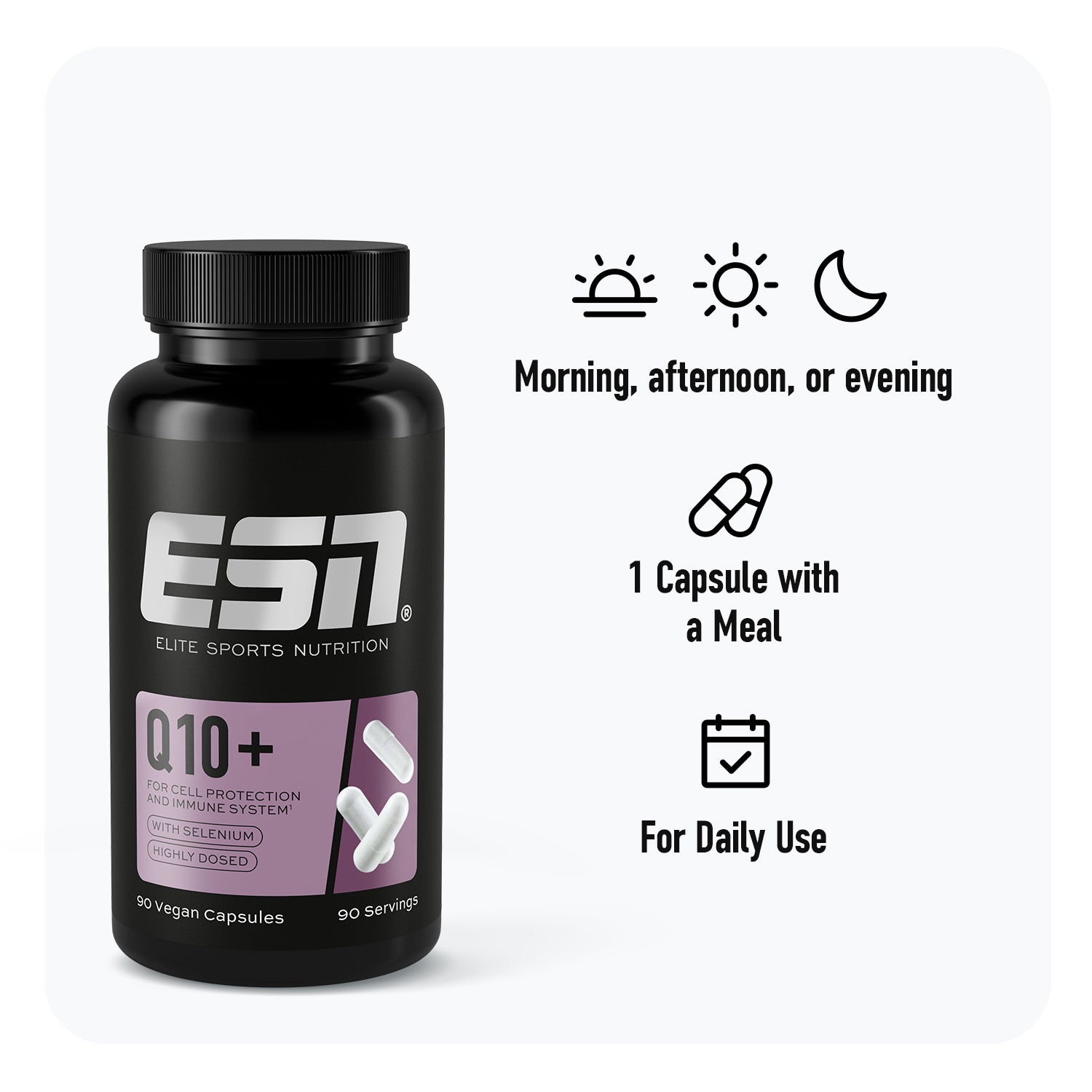 Modalità Power: On - con il nostro Q10 Pro + selenio. Il coenzima Q10, o CoQ10, è un fattore importante per dare energia ai mitocondri, ideale per le prestazioni durante l'allenamento.1 E il selenio? Questo oligoelemento è in grado di legare i radicali liberi, proteggendo così le cellule dai danni ossidativi e sostenendo i muscoli durante l'allenamento.2,3,4