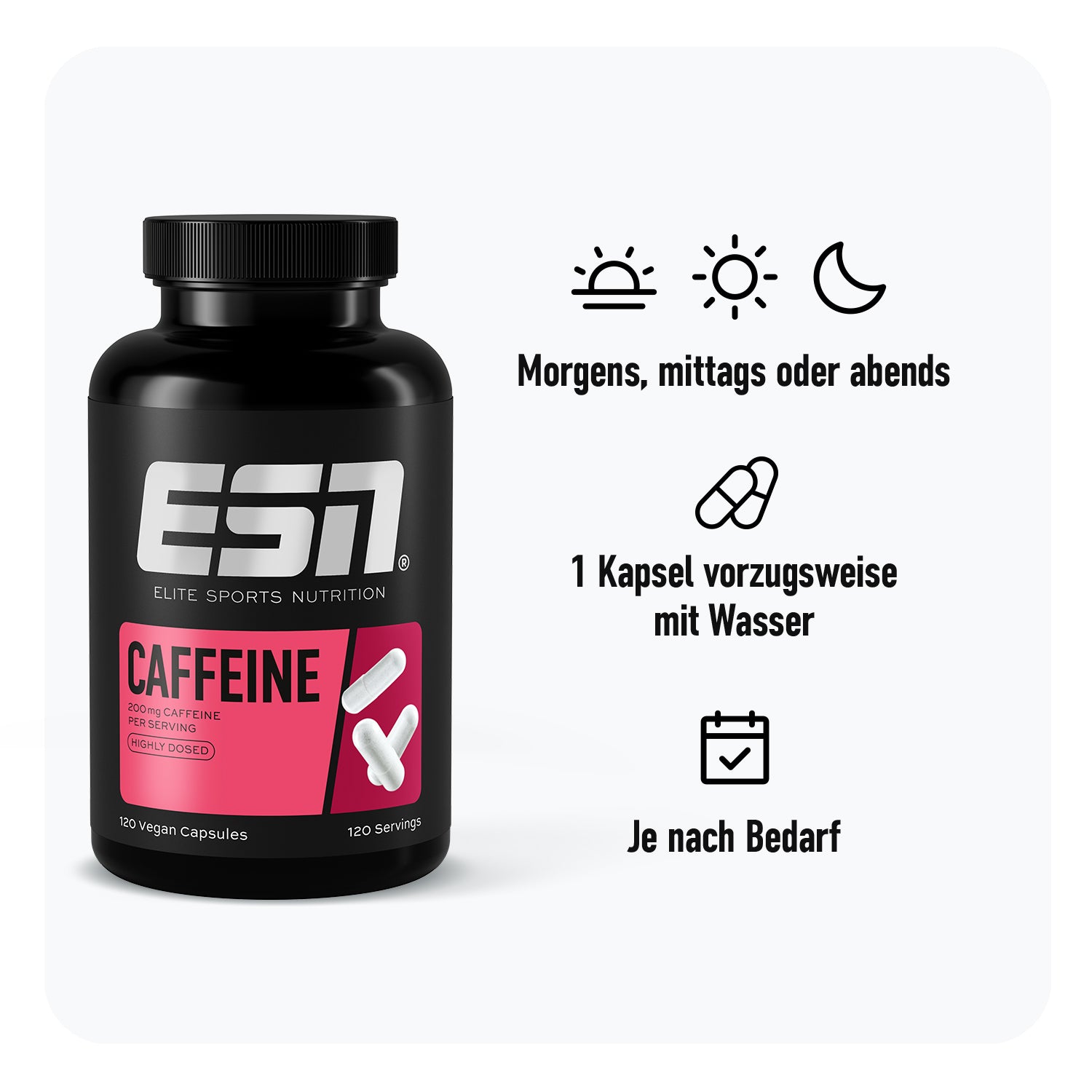 Boost your day, the caffeine way: Unsere hochdosierten Caffeine Caps geben dir den schnellen Energy-Kick und Support für deinen mentalen Fokus.¹ Perfekt für Training, langen Arbeitstag, Uni oder Alltag.