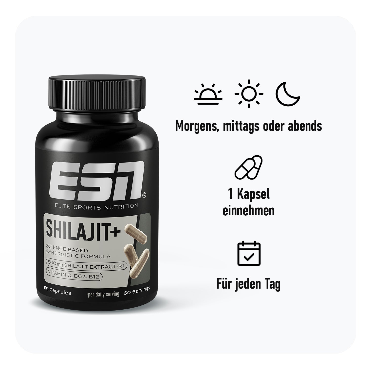 Traditioneller, hochdosierter Shilajit-Extrakt – kombiniert mit essentiellen Vitaminen (B6/B12/C) für Energie und Fokus